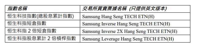 智通财经APP获悉,恒生指数公司于7月28日公布,已授权三星证券以恒生科指总股息累计指数、恒生科指短仓指数、 恒生科指 2 倍短仓指数及恒生科指股息累计 2 倍杠杆指数作为交易所买卖票据的参考基准,有关票据于 7 月28日在韩国交易所上市(见下图)。新增上述交易所买卖票据后,全球共有104 只与恒生指数系列挂钩的交易所买卖产品,在17 个不同交易所上市。截至 2021 年 6 月底,被动式追踪恒生指数系列的产品的产管理总值约438亿美元。