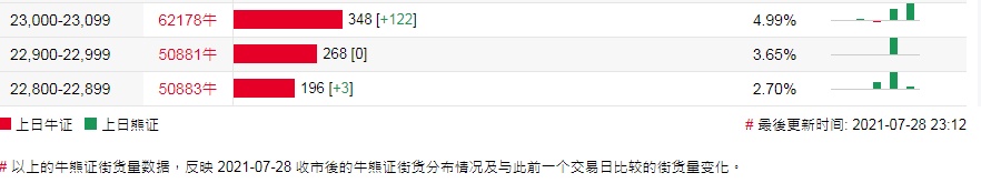 智通财经APP获悉,截至7月29日,恒指最新的牛熊街货比例为73:27。