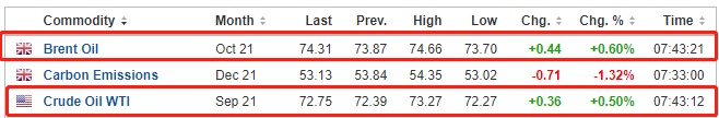 截至发稿,WTI原油涨0.50%,报72.75美元/桶。布伦特原油涨0.60%,报74.31美元/桶。