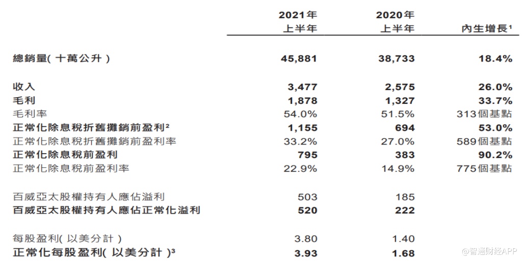 据百威亚太7月29日发布的2021年上半年业绩报告。公司于期内实现营业收入34.77亿美元,同比增长26.0%;实现净利润5.03亿美元,同比增长171.89%。销售端,上半年百威亚太实现销量458.81万千升,同比增长18.4%。其中,各主要市场销售表现良好。