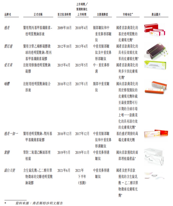 据弗若斯特沙利文报告披露,爱美客是最早在中国开展医美生物医用材料自主研发的公司。截至7月20日,爱美客已有六款医美产品商业化,其中五款都是透明质酸(玻尿酸)产品。招股书显示,2020年及今年第一季度,公司来源于透明质酸相关产品的收入占比合计均超过98%。