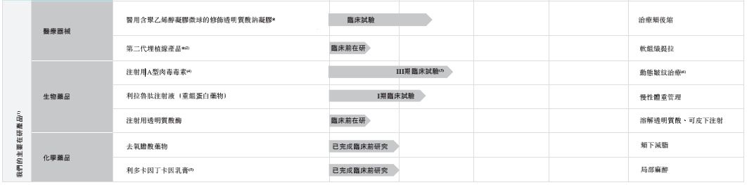 爱美客自身对此显然亦有认知,根据其招股书看,公司目前共有七款在研产品,布局方向包括应用于去除动态皱纹的肉毒毒素、应用于体重管理的利拉鲁肽注射液、面部埋植线等,同时产品线从生物医用材料向生物医药领域拓展。