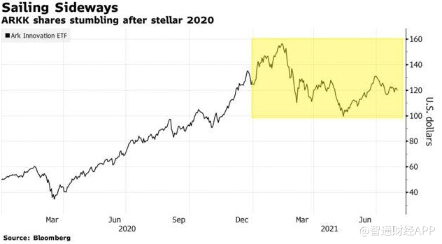 媒体称这只ETF是“做空2020年最成功的基金之一的大胆押注”。 在“木头姐”Cathie Wood掌舵后,ARKK去年飙升了约150%。