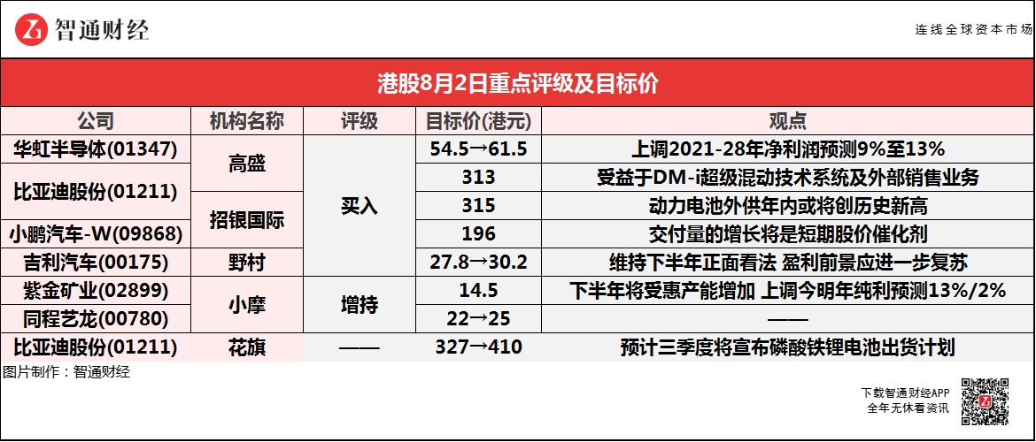 高盛将华虹半导体(01347)2021-28年收入预测调高4%-7%,以反映12吋晶圆出货量上升,上调经营溢利预测14%-23%,净利润预测调高9%至13%;