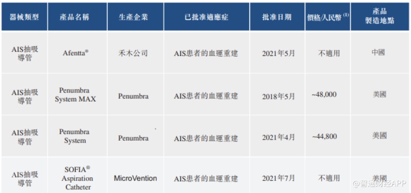 从产品类别来看,禾木生物的神经介入医疗器械的全面产品组合涵盖所有缺血性脑卒中、出血性脑卒中及神经通路领域。截至目前,公司已成功将TracLine® 血管内通路导管、FocuStar®神经球囊导管─Rx及Afentta®颅内血栓抽吸导管等三种神经介入产品商业化。