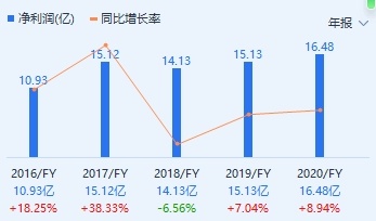 在过去的4年里即2017-2020年中,港华燃气的净利润多在15-16亿之间,变动不大,这也间接影响了资本市场对其的认知。