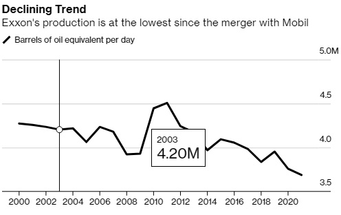智通财经APP了解到,北美最大的石油公司埃克森美孚公司(XOM.US)第二季度的日产量降至360万桶以下,为1999年公司合并以来的最低水平。但这可能是件好事。疫情迫使首席执行官Darren Woods放弃了2000亿美元的增长战略,并将支出削减至不足以保持产出稳定的水平。这使得该公司处于有利地位,既能从今年的原油价格上涨中获益,又能减少整体排放量。