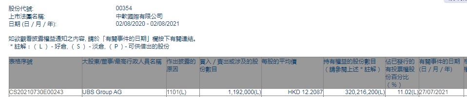智通财经APP获悉,香港联交所最新资料显示,7月27日,瑞银增持中国软件国际(00354)119.20万股,每股作价12.2087港元,总金额约为1455.28万港元。增持后最新持股数目约为3.20亿股,最新持股比例为11.02%。