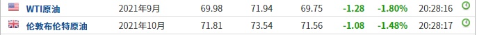 截至发稿,WTI原油跌1.80%,报69.98美元/桶。布伦特原油跌1.48%,报71.81美元/桶。
