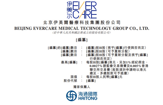 智通财经APP获悉,据港交所8月3日披露,北京伊美尔医疗科技集团股份公司(Beijing Evercare Medical Technology Group Co., Ltd.)向港交所主板递交上市申请,海通国际为独家保荐人。