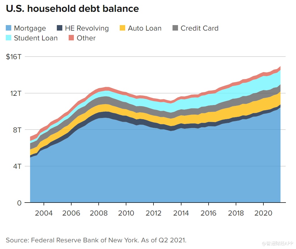 智通财经APP获悉,纽约联储周二公布的报告显示,截至6月底,美国家庭二季度负债增长3130亿美元至14.96万亿美元,增量创14年以来最高;负债较三个月前增长2.1%,增速为2013年第四季度以来最快。这些家庭负债的增长主要来自抵押贷款。