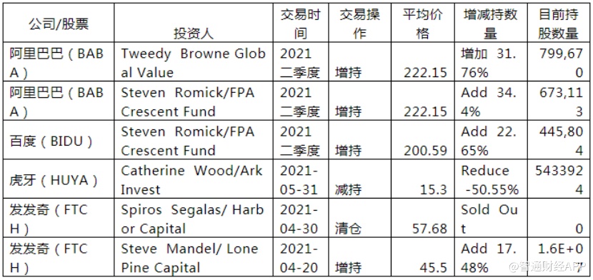以此次中概股市场震荡为例,政策因素波及整个教育中概股和互联网中概股,但美股投资者对互联网中概股的信心显然更强。从最近披露的美股机构和投资者二季度持仓变化来看,机构投资者对于互联网中概股的持仓变化很小,而投资者方面,阿里和百度分别被不同程度增持,体现出了投资人对此类公司的长期价值的信心。