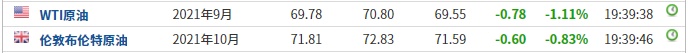 截至发稿,WTI原油跌1.11%,报69.78美元/桶。布伦特原油跌0.83%,报71.81美元/桶。