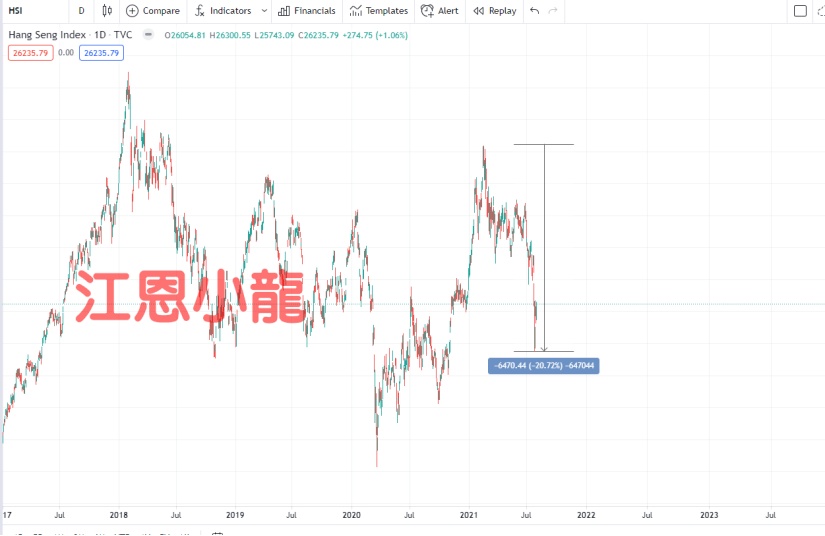 而恒指的确在2021年大幅下跌,暂时如我们分析在2/3月,及6/7月见顶下跌。暂时下跌了6470点。我们再一次继2018年底的「A股未来三年是牛市」之后,再一次赢在转势前!
