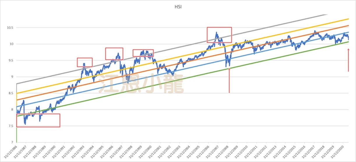 1991年: 1987年股灾后,股市开始反弹。但是同时美国海湾战争,股市反而一直向上升至1994年。但同期台湾及日本股灾,日本土地价格开始大跌。