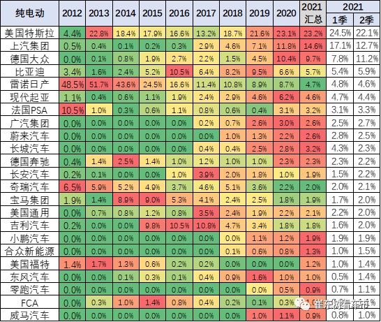 近几年的中国的新能源车企的车型表现都很优秀,尤其是21年的纯电动车型在政策推动下很强,未来潜力较大。