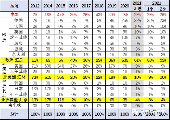 插混市场的中国表现较强,目前仍是25%的世界第一,但德国的插混走势较强,其他国家偏弱。