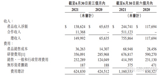 费用方面,截至2021年6月30日前的三个月内支出为6.25亿美元。2020年同期数据为4.25亿美元。其中,销售成本,研发费用均提升明显。具体来看,销售成本为3630万美元,去年同期为1430万美元,销售成本的增加主要归因于百泽安®、百悦泽®和安加维®产品销售增加,其中部分与百时美施贵宝公司授权销售产品的销量下滑相抵消。