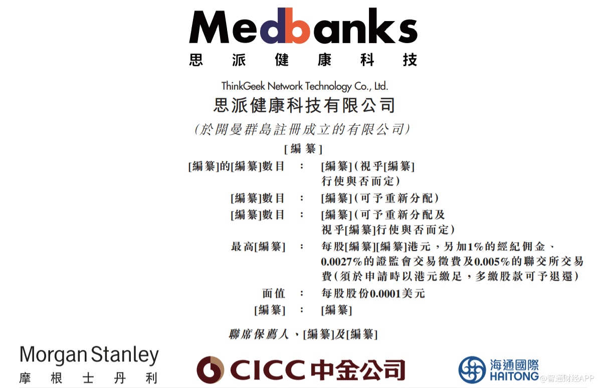 智通财经APP获悉,据港交所8月6日披露,内地医疗健康管理平台思派健康科技有限公司向港交所提交上市申请,摩根士丹利、中金公司及海通国际为联席保荐人。