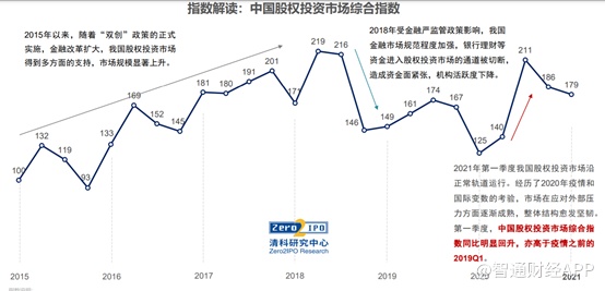 股权投资与宏观经济、市场资金流动较为密切。据清科研究中心的数据显示,自去年首季度受疫情影响,国内股权投资市场综合指数进入低谷只有125,Q2之后随着疫情控制和复工复产,市场投资明显活跃,在Q3达到巅峰211,追平了2018年初的活跃指数高度。但是在今年该指数再次下滑,截至Q2下降至179。