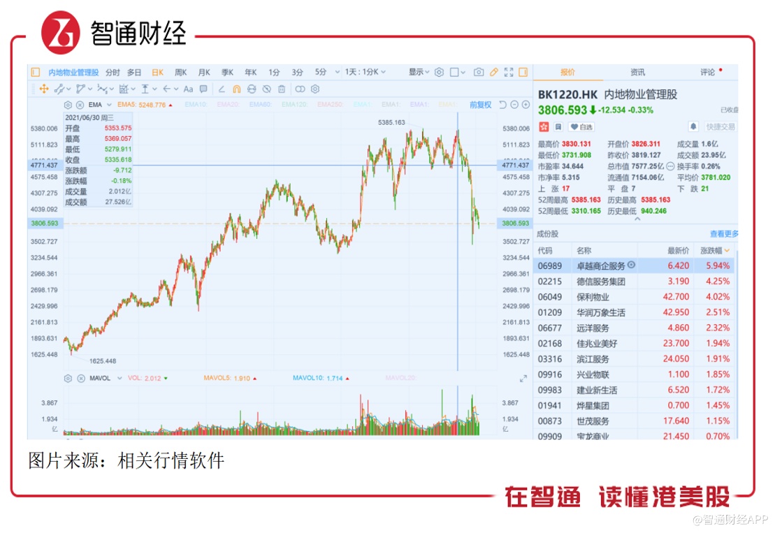 首先从整个大环境来说,受益于行业爆发式增长,三年来物业管理板块一直受资金追捧,2020年物业管理行业出现上市浪潮,期间上市数量近20家,2018-2020年的持续上涨推高了板块估值泡沫。然而2021年开始有大资金退出,IPO个股不再受资金青睐,从今年7月份开始,短短一个多月板块整体下跌幅度达30%。