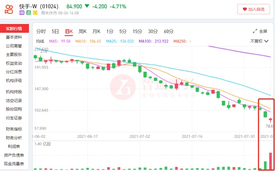 从盘面情况来看,快手解禁后首日经历了短时下跌,不久后股价开始回温企稳,最终稳定在84.9港元左右,跌幅已较8月5日大幅收窄。