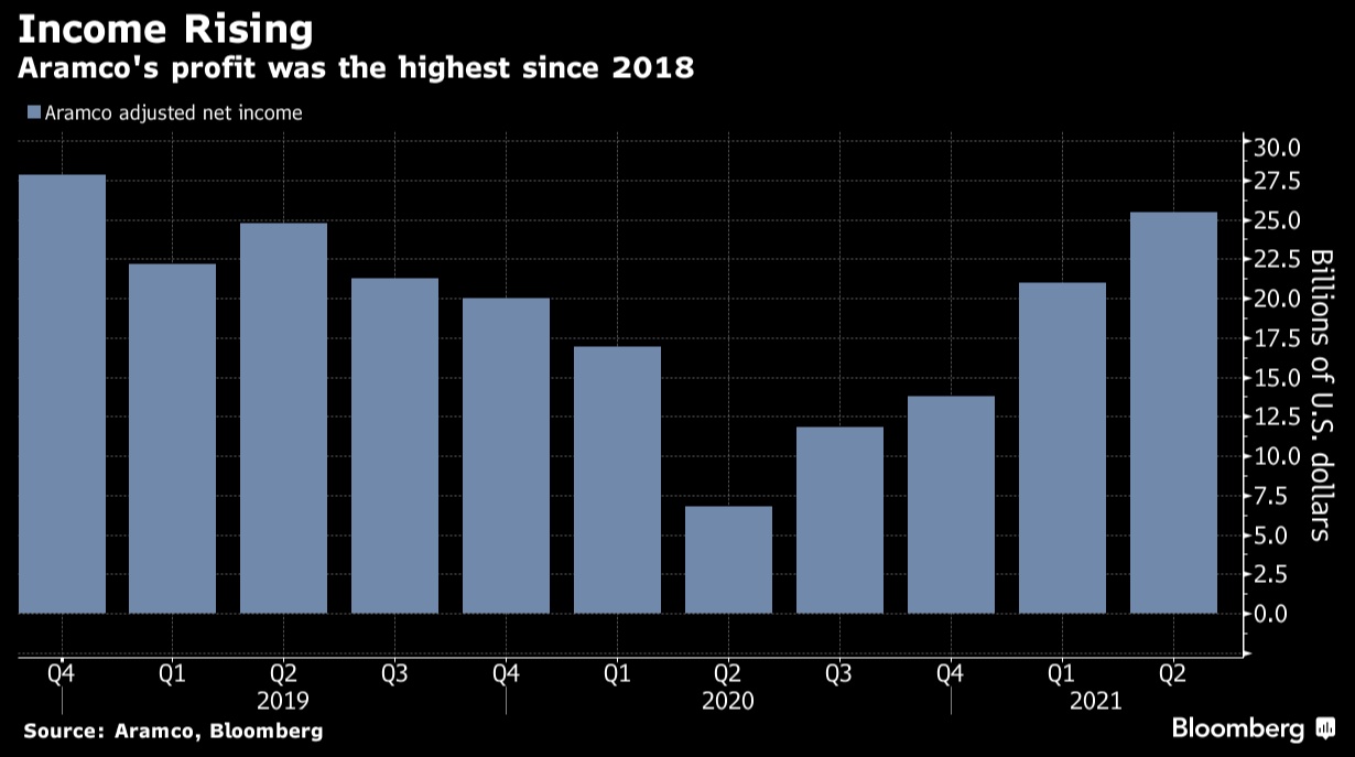 智通财经APP获悉,在石油和化工价格回升的推动下,沙特阿拉伯国家石油公司(沙特阿美)和行业内其他公司一样,录得了巨大的净利润。