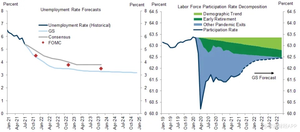 智通财经APP获悉,高盛预计,美国劳动力市场的增长势头将持续到2022年。