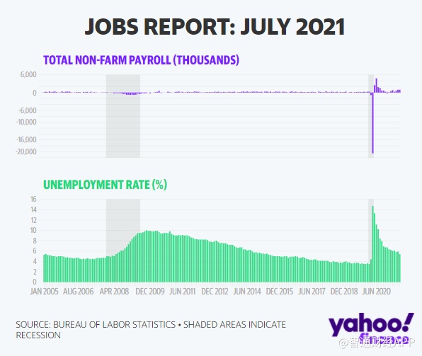 劳工部公布的数据显示,7月新增非农就业人数94.3万人,这是自2020年8月以来的最大增幅。 5月份新增非农就业人数也向上修正至61.4万人,而此前报告为58.3万人。 6月份新增非农就业人数从85万人向上修正至93.8万人。 7月份失业率从6月份的5.9%小幅下降至5.4%。