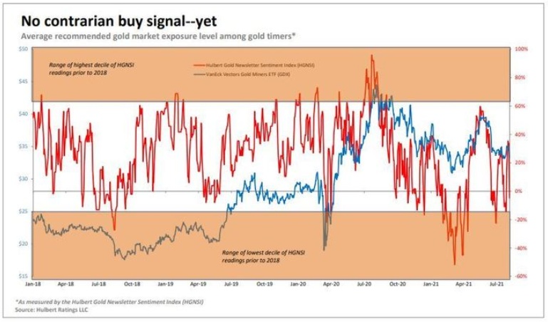 因此,Hulbert认为,如果接下来黄金投资者认输,并在黄金强势初步显现后继续看跌,那么反向买入信号可能很快就会出现。
