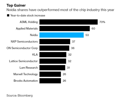 虽然,软银周二的财报电话会议没有提及Arm,但英伟达股价的飙升,将使软银很难放弃Arm的交易。英伟达在费城证券交易所半导体指数(SOX.US)中排名第三,涨幅达到了53%。