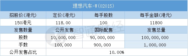 智通财经APP获悉,8月11日,理想汽车-W(02015)配售结束。配售招股价150港元,最终定价118港元,每手11800港元。