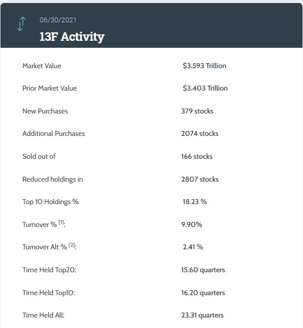 智通财经APP获悉,根据美国证券交易委员会(SEC)披露,全球最大资管公司贝莱德(BLK.US)递交了截至2021年6月30日的第二季度(Q2)持仓报告(13F)。