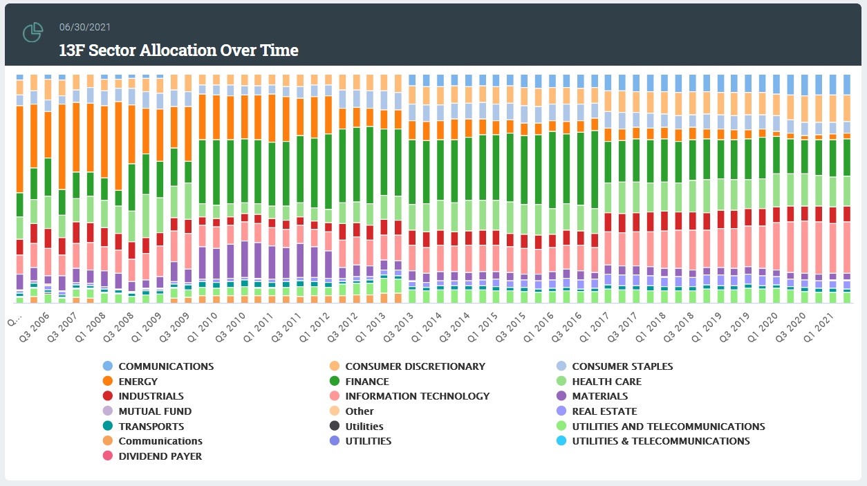 从持仓偏好来看,IT类、金融类和医疗保健类位列前三,占总持仓的比例分别为22.60%、16.32%以及12.84%。