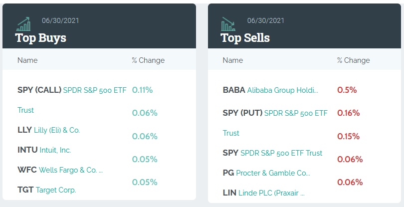 前五大卖出标的分别是:阿里巴巴(BABA.US)、标普500指数ETF看跌期权(SPY.US,PUT)、标普500指数ETF-SPDR(SPY.US)、宝洁(PG.US)和Linde(LIN.US)。其中,贝莱德二季度累计减持阿里巴巴约7402.79万股,剩余持股约982.97万股,减持幅度高达88.28%;阿里巴巴占其持仓比例由上季度的0.56%降至0.06%,持仓市值降至22.29亿美元。
