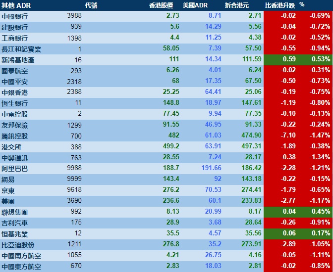 智通财经APP获悉,周四美股三大指数齐涨,港股ADR指数下跌,按比例计算,收报26359点,下跌158.32点或0.6%。