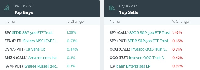 前五大卖出标的分别是:标普500指数看涨期权(SPY.US,CALL)、标普500指数看跌期权、纳指100ETF看涨期权(QQQ.US,CALL)、纳指100ETF看跌期权,伊坎企业(IEP.US)。