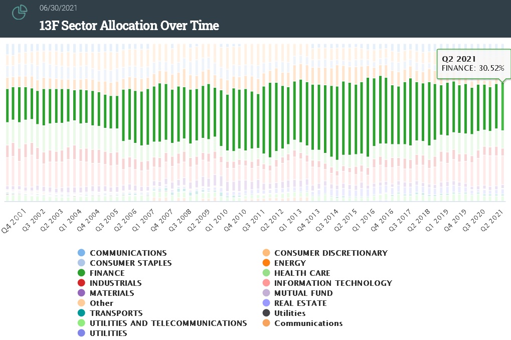 从持仓偏好来看,金融类、IT及医疗保健标的依然占花旗集团仓位重头。