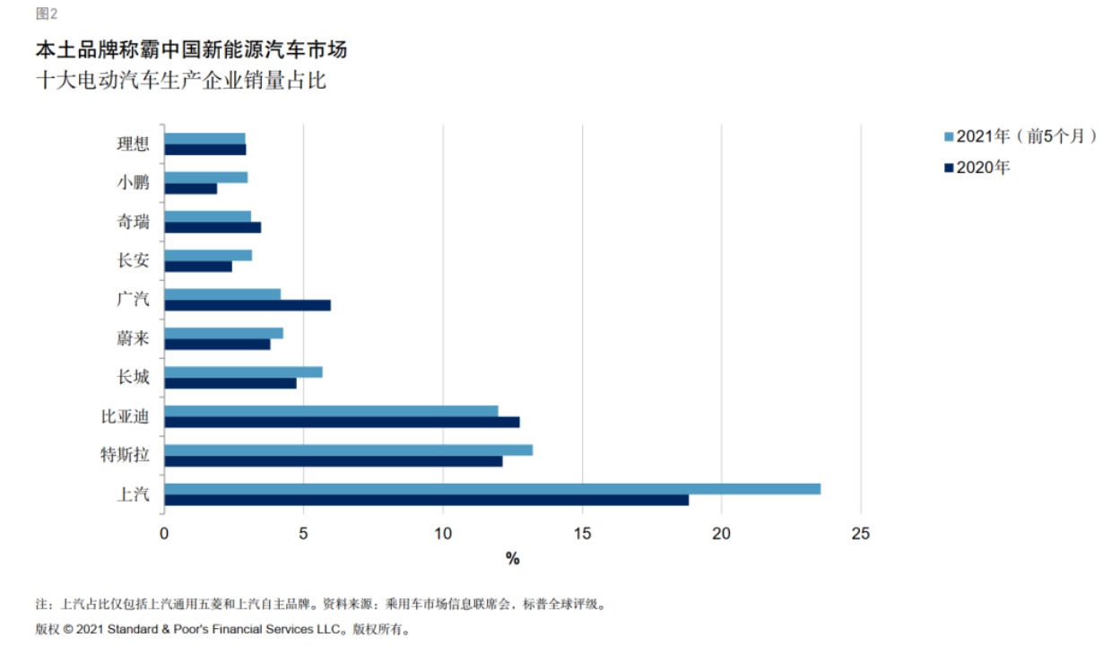 智通财经APP获悉,标普全球评级认为,中国新能源汽车普及速度快于预期,对中国市场新能源汽车2021-2022年批发量的假设,已经从先前的2021年200万辆、2022年280万辆,分别调高到240万和340万辆。调高后的假设意味着75%和40%的年增速。新能源汽车的渗透率已从2020年的5.4%,迅速上升到2021年上半年的9.4%和2021年6月份的12.7%。