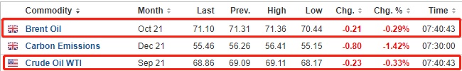 截至发稿,WTI原油跌0.33%,报68.86美元/桶。布伦特原油跌0.29%,报71.10美元/桶。