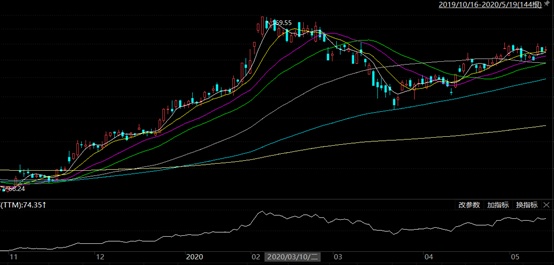 始于2019年的景气度行情,宁德时代在2020年和2021年初,两次出现比较大的调整,每一次股价都跌到半年线附近,中短期均线完全呈现空头排列。