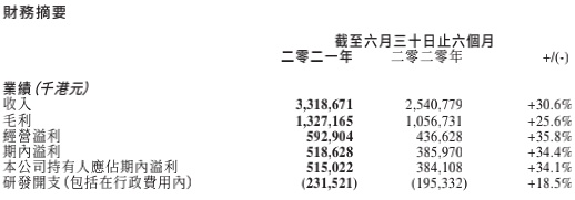 近日,百富环球发布了2021年上半年业绩报告,出色的业绩再次验证了公司作为细分领域龙头的业绩稳定性和成长性。中报显示,报告期内公司实现营收33.19亿港元,同比增长30.6%;归母净利润5.15亿港元,同比增长34.1%。此外,公司还在财报中宣派截至2021年6月末止6个月的每股普通股中期股息0.12港元。