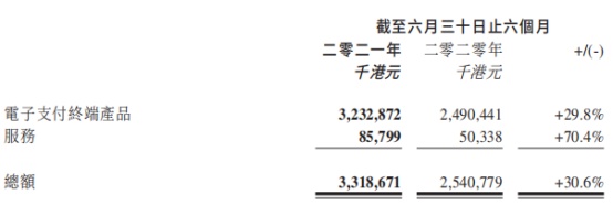 收入增势强劲,与此同时百富环球营收结构的变化亦值得欣喜。就业务类别看,公司的收入可以划分为电子支付终端产品和服务两大业务。其中,公司传统支柱业务电子支付终端产品实现收入32.33亿港元,同比增速为29.8%;同期,公司的服务业务实现收入8579.9万港元,增速高达70.4%。