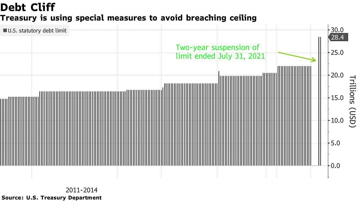 上周,民主党人士放弃了通过党内投票迫使参议院通过提高债务上限的机会,转而选择通过正常的立法程序——可能附加在一项临时政府拨款法案上,然而这将需要10名共和党参议员的默许。