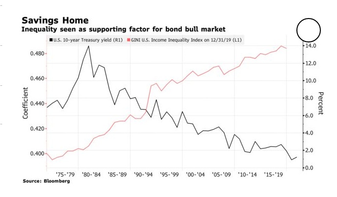 梅杰在周二的一份报告中写道:“投资者应该确保他们关注的不仅仅是缩减购债规模的言论。”“经济不平等造就了债券牛市,它是导致低利率的较长期结构性驱动因素之一。”