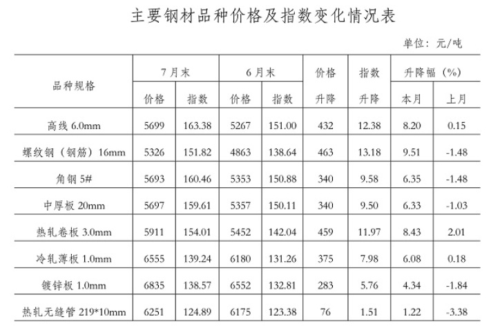 智通财经APP获悉,中钢协发布7月份市场钢材价格报告称,7月份,国内粗钢产量环比大幅减少,钢材价格止跌回升,其中第一周由降转升,后三周持续环比上升。进入8月份以来,钢材价格趋于平稳,总体呈小幅波动走势。