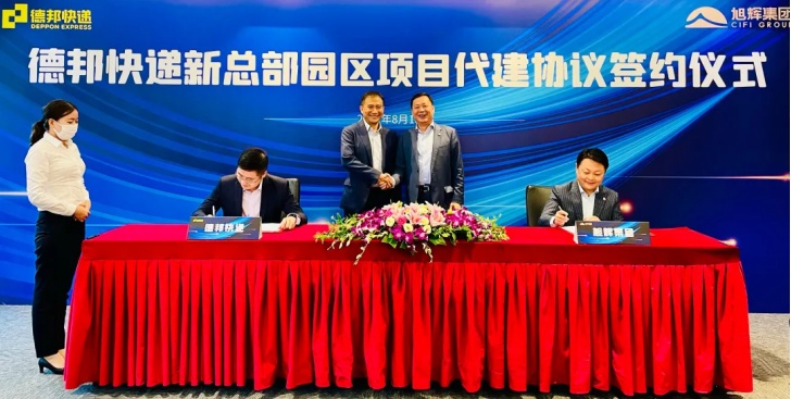 8月18日,旭辉建管正式与德邦快递新总部园区项目达成合作,依托旭辉上下游产业链资源优势,双方签署代建委托管理协议。德邦快递董事长、总经理崔维星,德邦快递集团副总裁、公共事务本部总裁田民芽,德邦快递集团副总裁、采购中心总裁陈露露,德邦快递集团副总裁、总裁办主任唐震,旭辉控股董事局主席林中,旭辉控股执行董事执行总裁、旭辉建管董事长陈东彪,旭辉集团副总裁、上海区域集团总裁方轶群等双方代表共同出席签约仪式。