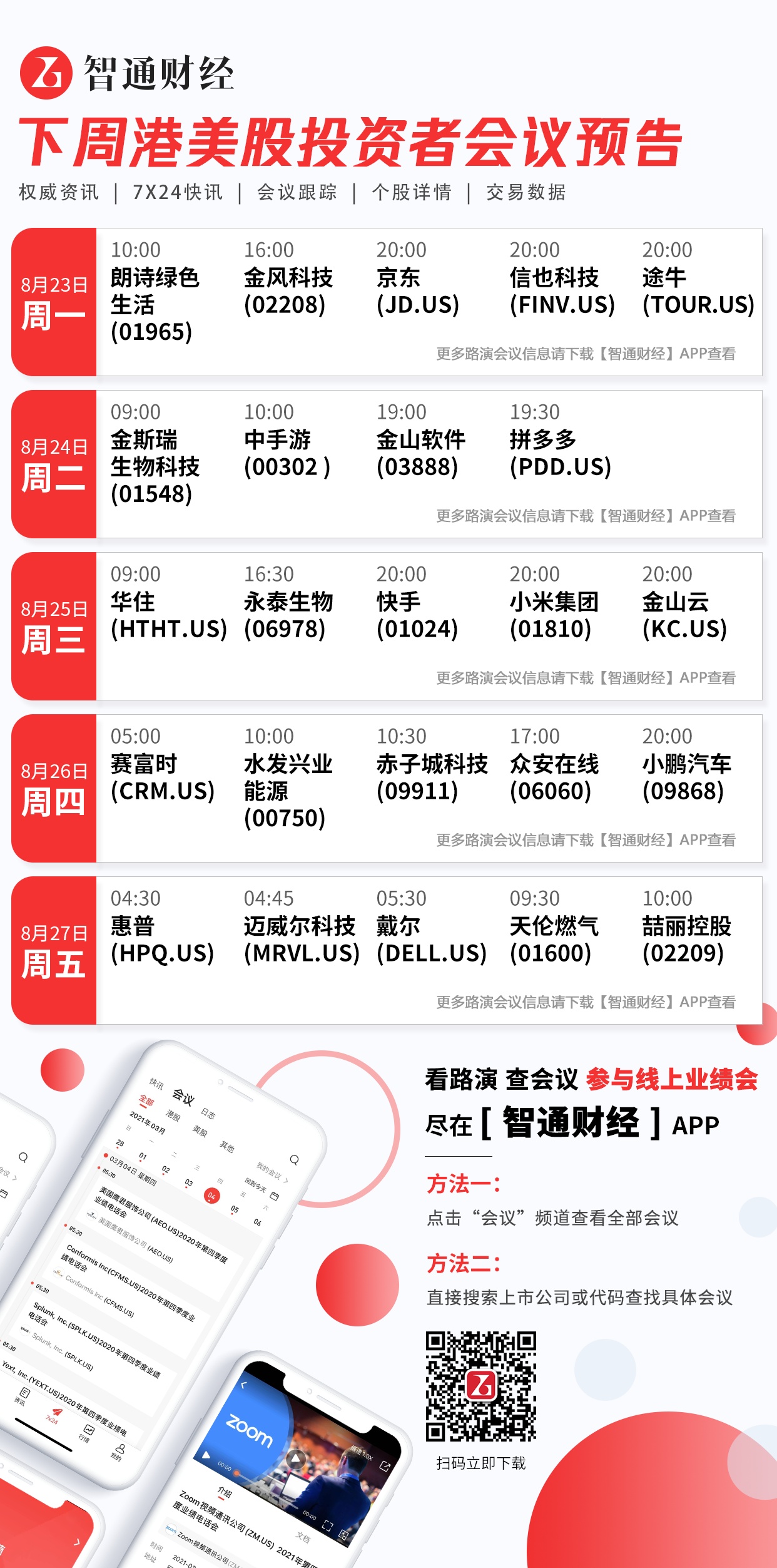 为您整理的下周(8月23日-8月27日)港美股上市公司会议日历。