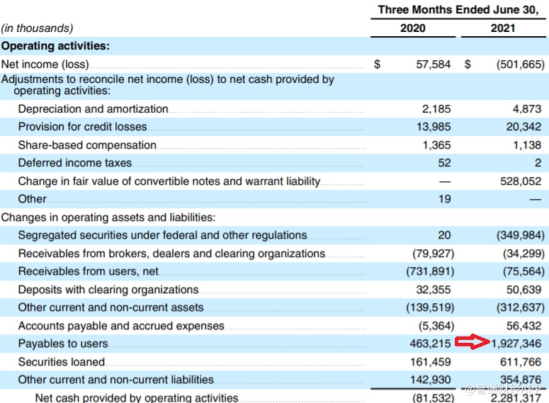 如上图所示,尽管Robinhood的净亏损5亿美元,但其支付给用户的现金Robinhood约为19亿美元。