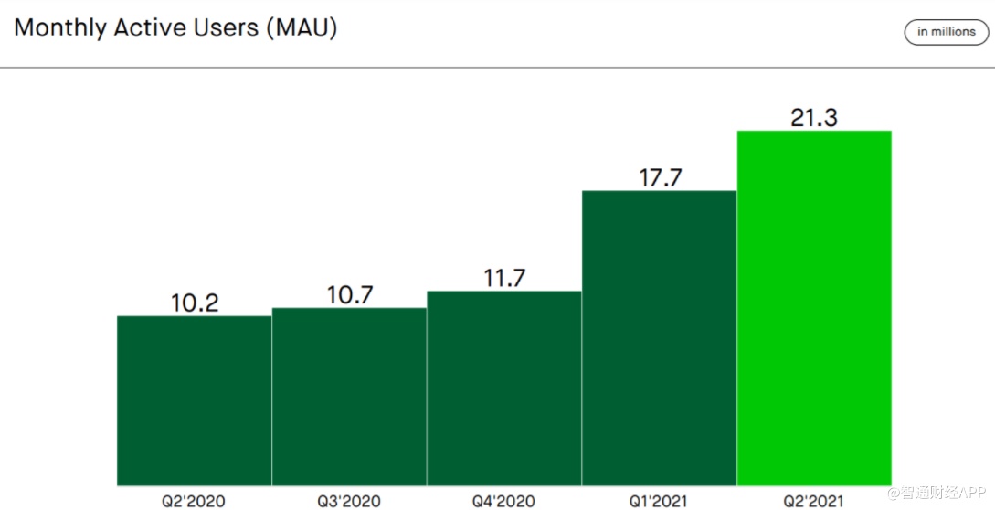 相反地,Robinhood二季度MAU环比增长了20%。